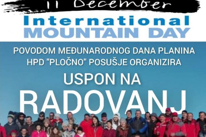 Hrvatsko planinarsko društvo „Pločno“ iz Posušja povodom Međunarodnog dana planina (11. prosinca) organizira uspon na Radovanj. Riječ je o usponu koji je primjeren i za one koji su manje fizičke spremnosti, ali i za djecu.